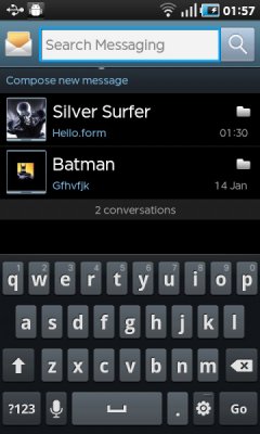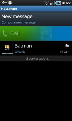 В списке сообщений, как и в телефонной книге, скольжение влево открывает окно нового сообщения, вправо - набирает номер абонента.