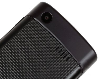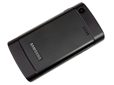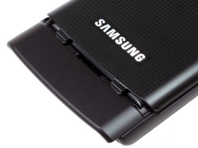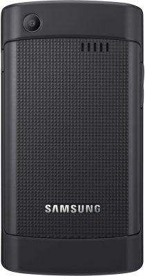 Крышка аккумуляторного отсека имеет приятную рельефную отделку. В верхней части устройства находится объектив 5 Мп камеры, которая способна записывать видео в HD. Оборудовать камеру вспышкой в компании Samsung не стали. Вероятно, это было вызвано нежеланием портить стильную черную поверхность смартфона белым пятном.