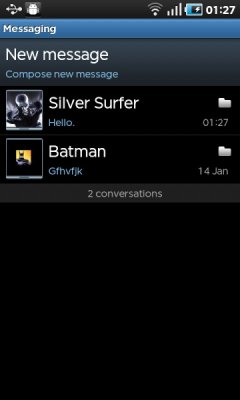 Раздел SMS и MMS предельно прост и не включает в себя папки. В верхней части меню находится кнопка Создать сообщение, под ней находится список всех сообщений.