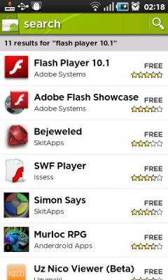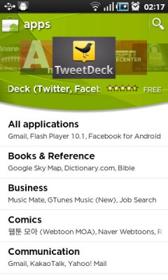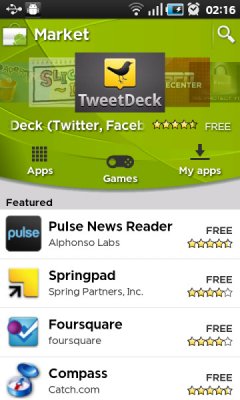 Структура Android Market проста. Приложения отсортированы по популярности. Меню разделено на три части: приложения, игры и загрузки. В верхнем правом углу находится кнопка вызова поиска.