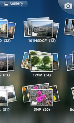 В Samsung I9010 Galaxy S Giorgio Armani по умолчанию установлена стандартная Froyo галерея. Она обладает хорошей функциональностью, симпатичным 3D дизайном и приятными эффектами перехода. Изображения и видео находятся в отдельных папках в различных разделах.