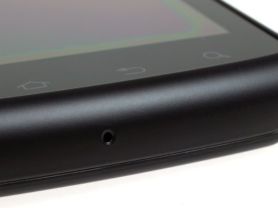 На верхнем торце аппарата находится mini-USB разъем, прикрытый заглушкой и 3,5мм разъем, отделанный металлическим кантом. Выглядит симпатично.
