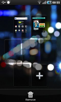 При помощи простого жеста вызывается меню редактирования, в котором вы можете добавлять и удалять рабочие столы и виджеты на них.