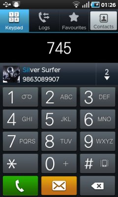 Функция Smart Dialing реализована так же, как и в обычном Galaxy S: она ищет одновременно и номер телефона, и имя абонента.