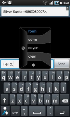 Если нажать и удерживать экран в области набора текста, то появится меню, отвечающее за копирование и вставку текста. Копирование поддерживается между SMS, имейлами, заметками и пр.