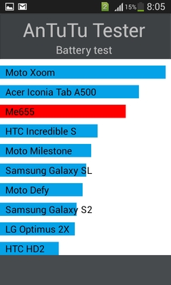 Автономную работу смартфона Samsung Galaxy Ace 3 обеспечивает литий-ионная аккумуляторная батарея ёмкостью 1500 мАч. В синтетическом тесте производительности аккумулятора Antutu Tester устройство набрало 655 баллов. Данный результат достаточно высокий, его нельзя назвать феноменальным и в большинстве своём он обеспечивается низкой производительностью процессора.