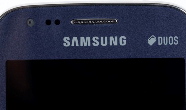 Над дисплеем находятся логотип производителя, надпись DUOS, информирующая о том, что смартфон работает с двумя сим-картами, коммуникационный динамик, накрытый защитной металлической решёткой, слева от которого расположены датчик приближения, датчик слежения и «глазок» фронтальной камеры.