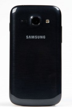 Крышка аккумуляторного блока сделана из прочного пластика с перламутровым покрытием. В верхней части тыльной крышки находятся объектив основной камеры, светодиодная вспышка и две прорехи мультимедийного микрофона. Под объективом основной камеры расположен логотип Samsung. Крышка аккумуляторного блока съёмная, под ней находятся аккумулятор, слоты для сим-карт и карты памяти. «Горячему» извлечению первой сим-карты и карты памяти ничего не мешает, а доступ ко второй сим-карте перекрывает аккумулятор ёмкостью 1500 мАч.