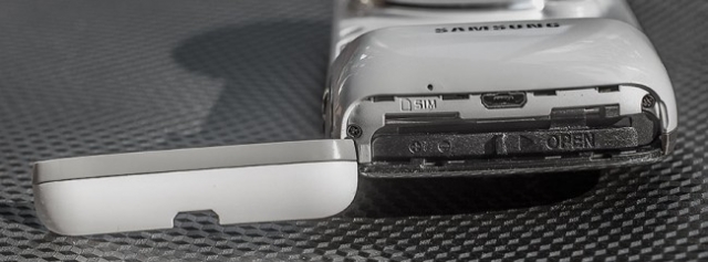 На верхней боковой грани Samsung Galaxy S4 Zoom находятся стандартный аудиовыход (3,5 мм) и инфракрасный порт. На нижней боковине расположен специальный отсек, накрытый заглушкой. Открыв заглушку, пользователь получает доступ к аккумуляторной батарее и слоту для полноразмерной сим-карты. Также на нижней боковой грани расположен порт microUSB, но для того, чтобы получить к нему доступ, открывать заглушку не нужно, так как в ней есть специальный вырез под него.