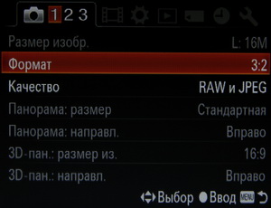 Кнопка MENU, расположенная слева от видоискателя, открывает главное меню. Оно интуитивно понятно, в нём легко разобраться в первую очередь из-за того, что в нём немного настроек.