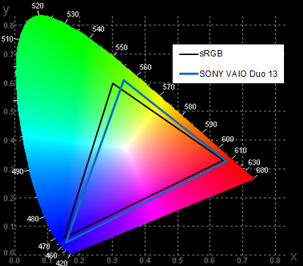 Sony VAIO Duo 13 оснащён 13-дюймовым IPS-дисплеем (Panasonic MEI96A2), который обладает разрешением 1920х1080 пикселей. Картинка на дисплее выглядит чёткой и детализированной.