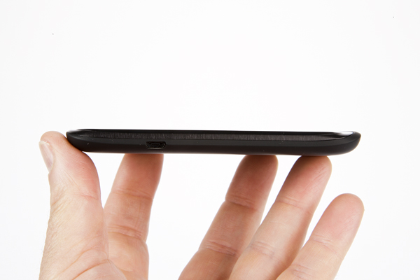На левом крае расположен порт microUSB, который, при покупке адаптера, можно использовать как MHL видеовыход. Разъем для наушников расположен на верхней грани.