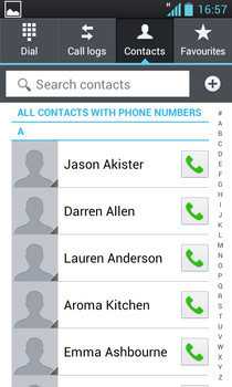LG практически не изменили стандартное приложение Телефонная книга для Android. В верхней части находится строка поиска с кнопкой добавления новых контактов рядом.