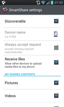 Если вы не хотите пользоваться USB кабелем или не устанавливали в телефоне карту microSD, то у вас есть возможность воспользоваться приложением SmartShare, которое передает данные через беспроводные сети, подключаясь к другим медиаустройствам, включая компьютеры, ноутбуки, планшеты и телевизоры, которые поддерживают эту технологию. Хотя приложение вполне понятно и просто для использования, необходимо дополнительное время, чтобы программное обеспечение телефона и другого медиаустройства опознали друг друга.