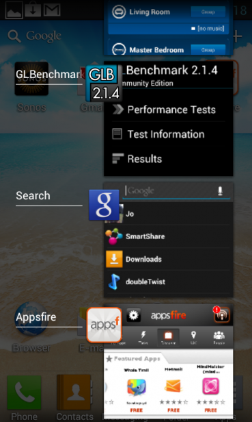 С экрана блокировки можно запустить четыре приложения, которые есть возможность изменить в меню Настройки. Пользователю доступно пять рабочих столов, как в One V, с возможностью убирать ненужные вам в данный момент. Если вы нажмете на кнопку под экраном, то появится многозадачное меню, показывающее все запущенные в данный момент программы и дающее возможность закрыть ненужные.