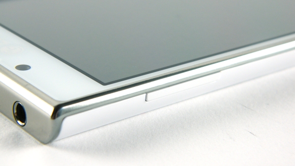 На верхней грани находятся кнопка включения/блокировки телефона и 3,5 мм разъем для наушников. Дотянуться до кнопки включения иногда бывает трудно, особенно учитывая то, что из-за острых углов телефон не вполне приятно держать в руке.