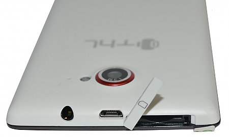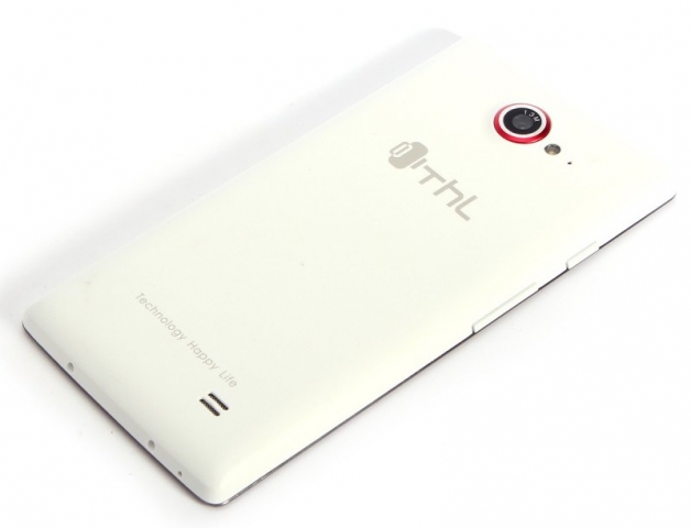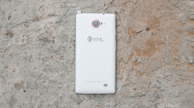 Объектив основной камеры аппарата располагается в верхней части задней панели. Он обведён красным цветом. Справа от объектива находятся односекционная светодиодная вспышка и маленькое отверстие микрофона. Ближе к середине задней панели разработчики поместили логотип компании. Внизу «спинки» девайса можно увидеть две прорези мультимедийного динамика и надпись «Technology Happy Life», что является расшифровкой «THL». Основной динамик выдаёт громкий качественный звук.
