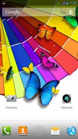 На главном рабочем столе нет ничего лишнего. Вверху располагается поисковая строка Google, в нижней части рабочего стола находятся иконки камеры и музыкального плеера. Разумеется, пользователь может самостоятельно настраивать рабочие столы, удаляя и добавляя иконки различных приложений.
