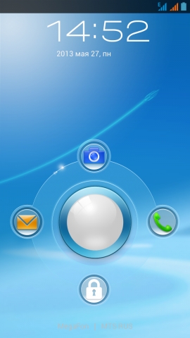 В самом низу рабочего стола, посередине, располагается иконка перехода в главное меню. Слева от неё можно увидеть ярлыки телефонного справочника и номеронабирателя, а справа – ярлыки сообщений и браузера.