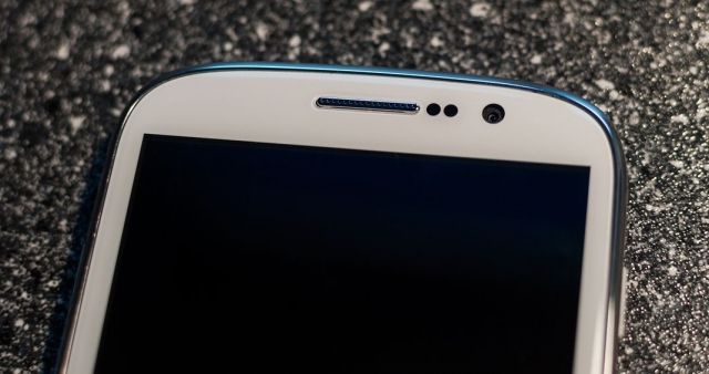 В верхней части лицевой панели аппарата прямо над экраном находится логотип производителя. Чуть выше разместилась прикрытая решёткой прорезь разговорного динамика. Немного правее можно увидеть датчики освещённости и приближения, а также глазок камеры. Датчик приближения активируется на расстоянии около 7 сантиметров. После его активации происходит блокировка сенсора смартфона для того, чтобы избежать случайных нажатий в процессе телефонных разговоров. Слева от динамика располагается светодиодный индикатор, информирующий о пропущенных событиях (звонках, сообщениях) зелёным цветом и о необходимости зарядки аккумулятора - красным цветом. Когда индикатор не светится, заметить его на корпусе смартфона невозможно.