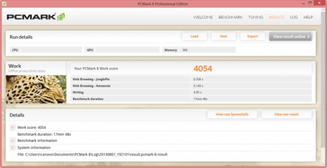 Под максимальной нагрузкой дисплей-планшет Lenovo ThinkPad Helix проработал от одного заряда чуть больше двух часов, а при умеренной нагрузке - шесть часов тридцать минут. Если подключить планшет к док-станции, то время автономной работы от одного заряда под максимальной нагрузкой увеличивается на полчаса, а при работе с умеренной нагрузкой - на три часа.