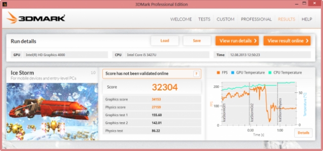 Тестовый образец построен на базе процессора Intel Core i5-3337U, имеет графическое ядро Intel HD Graphics 4000, модуль оперативной памяти объёмом четыре гигабайта и SSD-накопитель ёмкостью 128 гигабайт.