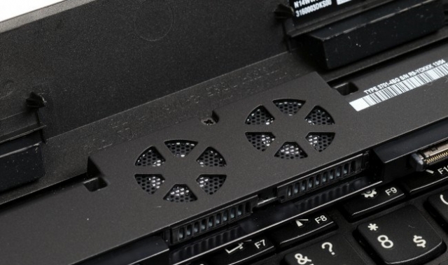 Клавиатурная док-станция компьютера Lenovo ThinkPad Helix отличается небольшой толщиной корпуса и достаточно массивным шарниром, на который закрепляется дисплейный блок. В корпус док-станции интегрирована 4-секционная литиево-полимерная аккумуляторная батарея мощностью 28 Втч. Шарнир позволяет установить дисплейный блок дисплеем к кнопкам клавиатуры и тыльной крышкой к кнопкам клавиатуры (положение-подставка). Под шарниром находятся отверстия, через которые можно увидеть два небольших вентилятора системы охлаждения, позволяющих более активно выводить горячий воздух.