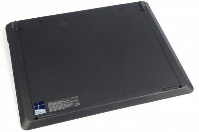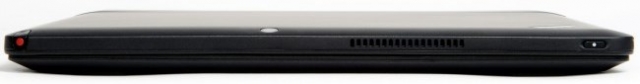 На левой боковой грани нет ни кнопок, ни портов, ни разъёмов. На правой боковой грани находятся комбинированный аудиовыход, спаренная кнопка регулировки громкости и кнопка блокировки функции автоматического поворота дисплея. На верхней грани расположены кнопка питания с тугим ходом, верхушка стилуса и радиаторная решётка активной системы охлаждения. На нижней боковой грани находятся отверстия для прикрепления планшета к док-станции, лоток этикеток с обязательной служебной информацией, гнездо для подключения зарядного устройства, решётка, через которую забирается воздух в активную систему охлаждения, лоток для установки полноформатной сим-карты, разъем USB 2.0 и видеовыход Mini DisplayPort. Такие разъёмы, как, например, D-sub и RJ45 можно получить только, используя внешние фирменные адаптеры. В корпус дисплейного блока интегрирован 3-секционный аккумулятор мощностью 42 Втч.