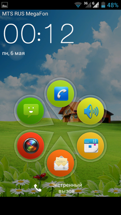 Над виртуальными кнопками управления на рабочем столе находятся 5 иконок наиболее часто используемых приложений. Посередине расположена иконка входа в главное меню, по бокам ярлыки номеронабирателя, телефонного справочника, сообщения и браузера. Все эти приложения, кроме главного меню, можно поменять на любые другие по желанию пользователя.