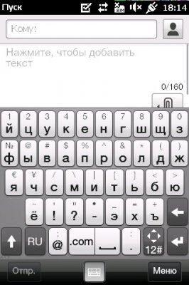 Що стосується введення тексту, то система аналогічна HD2 з поправкою на меншу роздільну здатність екрану. Але, незважаючи на це, віртуальна клавіатура HD mini мені сподобалася, як у горизонтальній, так і у вертикальній орієнтації. Остання, до речі, змінюється автоматично при повороті комунікатора, в mini є датчик положення. Після періоду звикання набирати на клавіатури стає цілком зручно, помилок небагато.
