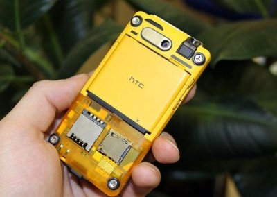 Дизайн комунікатора також примітний затискачами, стилізованими під гвинти, які роблять екстер'єр більш цікавим. Сполучні елементи, використані при складанні телефону, не приховані і служать ілюстрацією тонкої роботи, яку нечасто зустрінеш при знайомстві з мобільними телефонами. Внутрішні деталі пофарбовані в яскраво-жовтий колір, що теж незвичайно. Загалом, над зовнішністю HD mini попрацювали на славу, мені подобається увага до деталей.