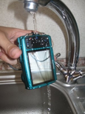 Также Olympus Mju TOUGH 3000 погружался в стакан с водой и "купался" под струей воды из-под крана.