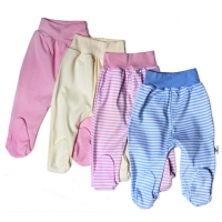 Носочки новорожденному ребенку нужны для постоянного поддержания ножек в тепле и для фиксации ноги в ползунках или комбинезоне. В этой группе одежды присутствует просто несчетное количество вариаций. Носочки могут быть из тонкого трикотажа, махровые, шерстяные, разного размера, длинной до щиколотки, до середины икры и до коленки, для малышей и малышек. В нашей стране их выпускают ТМ ВиАтекс, Рубежанская чулочная мануфактура и др. Используется все многообразие расцветок и рисунков. Для подросших, начинающих ходить крошек производители выпускают носочки с так называемыми «тормозами», небольшими резиновыми точками на подошве для предотвращения скольжения.