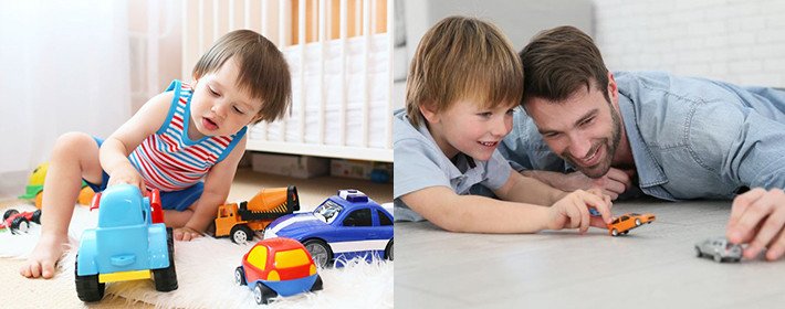 Машины всегда приводят в восторг. Мальчишки часами ползают по полу, катая перед собой самосвал размером с крысу и издают звуки ревущего мотора. Заметим, очень похожие.