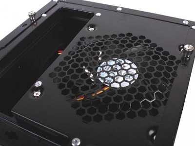 Охлаждение системного блока обеспечивают три вентилятора с диаметром крыльчатки 120 миллиметров. Один вентилятор находится спереди и оснащён голубой подсветкой другой сзади, а третий сверху системного блока.