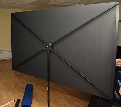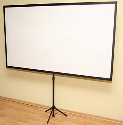 Данный экран в собранном состоянии помещается в маленький чехол, а установка его занимает не более пары минут. Поверхность полотна экрана матово-белая. Штанги обеспечивают ровно натянуть полотно. Epson ELPSC21 регулируется по высоте.