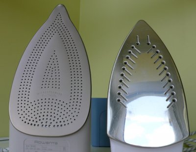 Есть еще один положительный момент: в данной модели применена помповая технология Steam Force, благодаря чему не требуется сильно прижимать утюг к поверхности ткани. Разработчики заявляют, что благодаря данной технологии Rowenta DW 9035 воспроизводит почти на 30 процентов больше пара, в сравнении со схожими моделями других производителей. Более того, подача пара осуществляется напрямую вглубь ткани и контролируется при помощи специальных кнопок. К примеру, если ткань не слишком мятая, количества пара будет достаточно в объеме, предусмотренном программой. Если же требуется дополнительная влага, то для этого в нижней части утюга размещена специальная кнопка. Во время ее нажатия активируется постоянный пар, который помогает гораздо быстрее разгладить слишком непослушную ткань. Стоит отметить, что пар выходит по всей поверхности подошвы утюга. Отверстий для выхода пара здесь аж 434. Благодаря системе Microsteam 400 Platinium, утюг Rowenta DW 9035 может гладить одежду или занавески, висящие на вешалке.