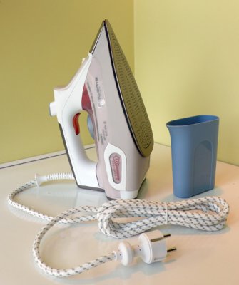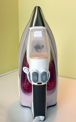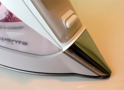 При первом использовании Rowenta DW 9035 мы начали осторожно гладить деликатные цветные вещи, боясь, что подошва утюга может «прихватить» ткань. На практике оказалось, для того чтобы одежда повредилась, необходимо изрядно попотеть. Такую, казалось бы, наболевшую проблему решает правильный выбор теплового режима для конкретного типа ткани. Если оставить работающий Rowenta DW 9035 в горизонтальном положении, то через полминуты сработает защита и он автоматически отключится.