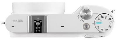 На верхней панели аппарата расположены кнопка спуска затвора с переключателем питания, пара стереомикрофонов, "горячий башмак" для крепления внешней вспышки, защищенный специальной заглушкой, кнопка Smart Link и диск переключения режимов. Кроме того, прямо под поверхностью корпуса установлена внутренняя антенна Wi-Fi. Встроенной вспышки у камеры нет вообще. На "горячий башмак" можно установить внешнюю вспышку SEF8A, которая идет в комплекте, либо купить любую внешнюю вспышку. В автоматическом режиме 100 % будут работать фирменные вспышки Samsung, а остальные не факт (но в режиме "P" точно будут работать все). Вспышку из комплекта очень мощной назвать нельзя (ведущее число 8). Но она имеет большое количество режимов (умная вспышка, подавление эффекта "красных глаз", заполняющая, синхронизации для 1й и для 2й шторки и другие). Во избежание переэкспонирования или недоэкспонирования кадра яркость вспышки можно настраивать вручную. С одной стороны внешняя вспышка делает камеру более громоздкой. Но с другой - угол между внешней вспышкой и центральной осью объектива шире, чем у встроенной, а это способствует уменьшению эффекта "красных глаз". Кнопка "Smart Link" отвечает за беспроводную передачу данных. Ей можно задать любую из беспроводных функций.