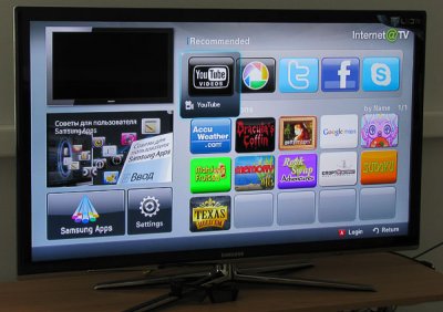 Немає необхідності включати ПК, щоб подивитися на ТБ цікавий ролик з YouTube або поспілкуватися з друзями по Skype, в Twitter або Facebook. Для цього передбачений режим Internet@Tv, що надає користувачеві популярні мережеві сервіси (за умовчанням встановлені і не можуть бути видалені Youtube, Picasa, Twitter, Facebook і Skype), а також магазин застосувань Samsung Apps, де можна викачати додаткове ПО (приміром, аплет Google Maps або ігри).