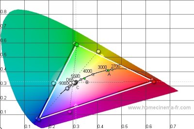 Виміряне колірне охоплення телевізора виявляється ширше за стандарт sRGB (і, відповідно, Rec. 709), проте є можливість його звузити до стандартних рамок, вибравши у відповідному меню з трьох варіантів налаштування "Авто". Втім, більшість користувачів визнають не дуже природні, проте "насичені" і "соковиті" основні кольори в режимі розширеного охоплення швидше перевагою, чим недоліком цього ТБ, для інших же можливість приведення до стандарту буде додатковим плюсом.