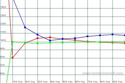З чотирьох передвстановлених режимів, передбачених виробником, : "Стандартного", "Звичайного", "Динамічного" і "Кіно", найбільш коректним і оптимальним виявляється останній, - "Кіно". Окрім штатних налаштувань яскравості, контрастності, колірності і деяких додаткових параметрів, знаючому користувачеві стають доступні і глибші налаштування - наприклад, баланс білого по десяти точках, корекція гамми, рівень чорного, регулювання деталізації в тінях і так далі. Але головне - встановлена в цьому режимі температура за умовчанням "Теплый2" найбільш близька до цільової точки D65 в усьому діапазоні відтінків сірого. А значить, і зображення на екрані найбільшою мірою відповідатиме задумці режисера.