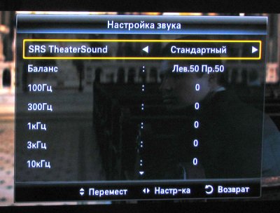 Функціонально з точки зору аудіо ТБ оснащений системою розширення стереозвучания SRS TheaterSound, SRS TruSorround HD, SRS TruDialog, а також п'ятисмуговим еквалайзером. Наявність декількох передустановок дозволяє оперативно вибрати найбільш відповідну для конкретного типу контенту, втім, і без їх задіювання звучання цілком на рівні.