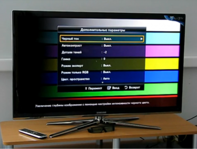 На відміну від деяких виробників, що передбачають при першому включенні опитування, для якого варіанту використання настроювати ТБ (магазин/будинок), в Samsung UE46C7000 за умовчанням встановлений не далеко найоптимальніший з точки зору точності перенесення кольорів режим. При значеннях за умовчанням ТБ більше оптимізований під роботу на вітрині магазину, де треба убити споживачів дуже яскравою картинкою з максимально насиченими кольорами. Відповідно, рекомендуємо відразу після придбання згаяти час на налаштування зображення для домашнього використання ТБ.