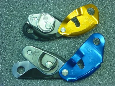 Напоследок вскользь упомяну о таких приспособлениях, пригодных для спуска по веревке, как самоблокирующиеся страховочные устройства.