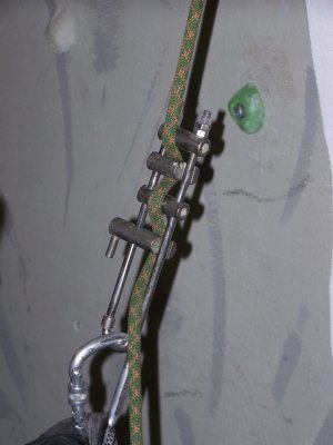 Но не лишена восьмерка и недостатков. Веревку она тоже крутит, хотя и меньше чем узел UIAA. Если спускаться по двойной веревке, то они скручиваются между собой, и для того чтобы потом эту веревку сдернуть, приходится раскручивать её вручную, что иногда бывает не слишком удобно. К тому же тело восьмерки весьма невелико и при трении о веревку она достаточно сильно нагревается. Это обстоятельство накладывает определенные ограничения на скорость спуска, превышение которой может привести к порче веревки. И, наконец, восьмерка не позволяет осуществлять страховку двойной веревкой, т.к. затрудняет выдачу/выбирание веревок по одной пряди, что сводит на нет все преимущества применения для страховки двойной веревки, как таковой.