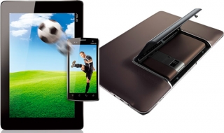 Смартфон комплектуется двумя модулями цифровых камер. Тыловая камера имеет разрешение 8 МП, а фронтальная – 0,3 МП. Но учитывая предназначение фронтальной камеры (видеозвонки), такого разрешения будет вполне достаточно для небольшого экрана смартфона. Относительно планшетного модуля, то он комплектуется своей фронтальной камерой с разрешением 1,3 МП, а на тыльной стороне просто имеет прорезь для камеры смартфона. Такую конструкцию можно назвать очень удачной и экономически обоснованной.