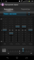 Штатный аудиоплеер, имеющий традиционное название Walkman, характеризуется наличием большого количества разнообразных настроек и дополнительных программных улучшений звука – встроенным эквалайзером с десятью предустановленными значениями, технологиями ClearBass, ClearPhase, xLoud и технологией виртуального объемного звучания.