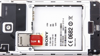 Телефон не только удобно лежит в руке, но и за счет шершавой поверхности задней панели надежно в ней удерживается. Как и у других смартфонов Sony, она выполнена из твердого на ощупь пластика и эффектом soft-touch не обладает. Однако телефон в руке не скользит и отпечатки пальцев на нем не остаются. Естественно, отпечатки остаются на блестящем ободке, расположенном по контуру корпуса, но на нем они практически не заметны.