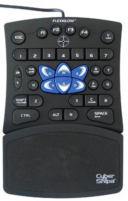 Cyber Snipa - ще одна ігрова клавіатура, чия розкладка призначена для шутерів. Клавіші пересування розташовані в її центрі, причому між ними і рештою клавішами відстань більше, ніж у Wolfking Warrior. У комплект постачання входить подушечка, так що рука не втомиться навіть від довгих мережевих баталій. Подушечка теж підкреслює різницю між багатоцільовою звичайною клавіатурою і геймерською моделлю. Клавіатурою, не тільки зручно користуватися, вона добре лягає під руку, всі клавіші зручно розташовані, приємні на дотик.